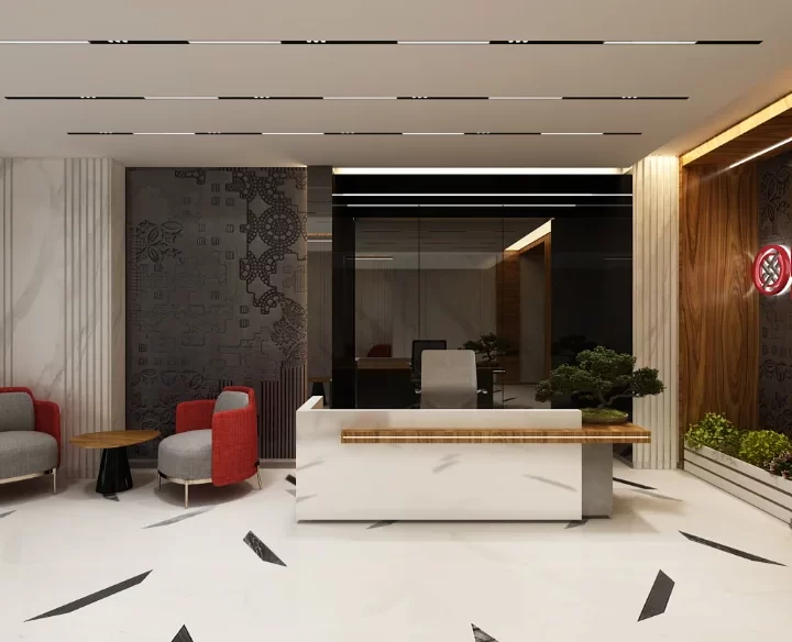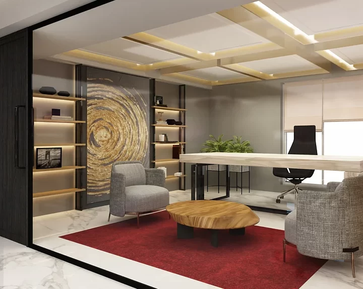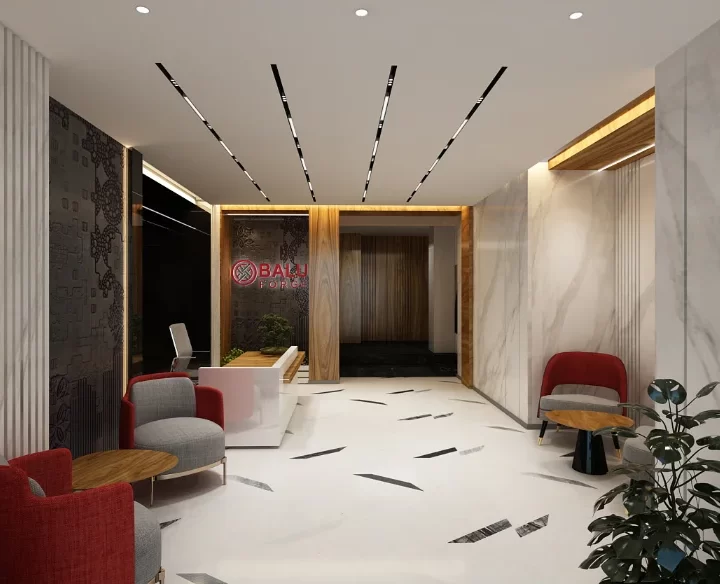 Balu, an avant-garde manufacturer of Forged crankshafts and Forged Components, and the owner of Imperial Palace (one) converted their top floor to an Executive Office to cater to their National and International Clientele. The design was to display a grandeur through marble and veneer, glass and metal, and display a modern adobe for its key members and staff. We were blessed to be appointed as their design partners, to give them their corporate set-up along with the responsibility of the façade face-lift and a design for their Hotel Reception, to blend smoothly to their top floor welcome area.