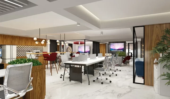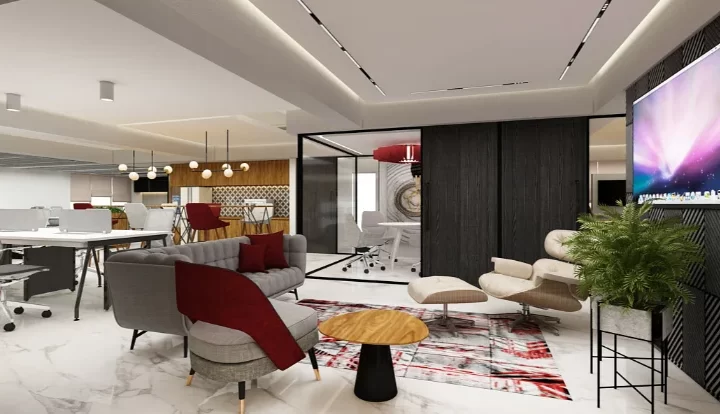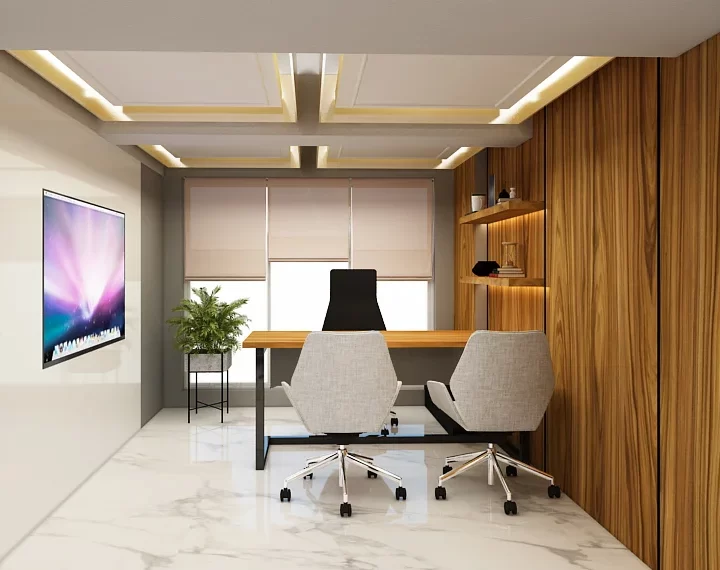 So, we had to rack our brains to make sure it is planned to meet the Vaastu orientations and looks grand with the restricted height of just about seven feet under the web of the beams. We constructed the plan in a way that each enclosure was structure in the bay between the beams adhering to the Vaastu guideline. The planning was intricately designed around the beams with the seats dodging the bulk, the orientations avoiding the south and the Vaastu consultant laying his solutions to maintain the proficiency of the space and the business. The doors were planned to the maximum height of eight feet, strategically placed in-between the beams, and so we achieved a sound plan with aesthetics and correct alignment.