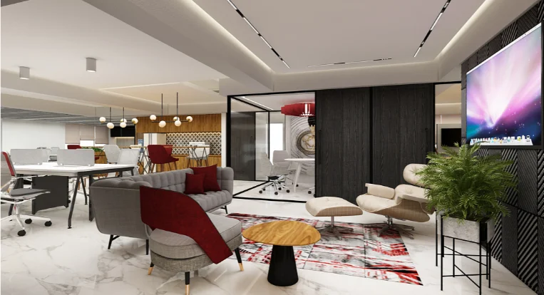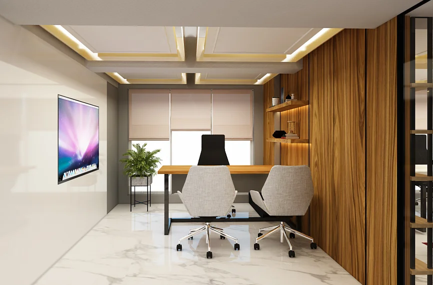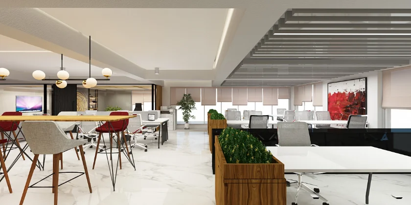 So, we had to rack our brains to make sure it is planned to meet the Vaastu orientations and looks grand with the restricted height of just about seven feet under the web of the beams. We constructed the plan in a way that each enclosure was structure in the bay between the beams adhering to the Vaastu guideline. The planning was intricately designed around the beams with the seats dodging the bulk, the orientations avoiding the south and the Vaastu consultant laying his solutions to maintain the proficiency of the space and the business. The doors were planned to the maximum height of eight feet, strategically placed in-between the beams, and so we achieved a sound plan with aesthetics and correct alignment.