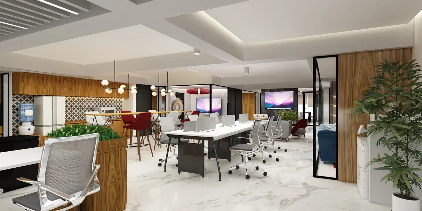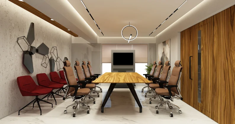 The actual project design initiated right at the survey stage! Our Innovative Visions were put to test when we captured the age and construction of the building. The structure was built on the Beam and Column grid to accommodate hospitality services. Hence, post the demolition of the existing setup, we were amazed to see the weave of the intersecting beams and the slab construction in levels to house the play of rooms and restrooms. Now, this was to be flipped into an office setup with Vaastu as the planning guide.