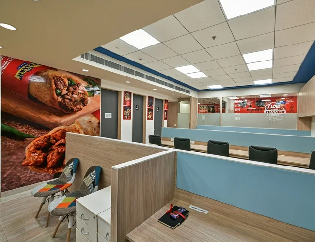 The space planning was dense and the spaces weren’t big enough to accommodate large breakouts, but we had to make it work. We used the circulation spaces and the negative areas to create small comfortable nooks for short coffee breaks or a small chit-chat. Achieving “more” in “little” is one task that looks more difficult than imagined. With Mosambee we managed to breakthrough the obstacle with unseizing help from the client and our vendors.