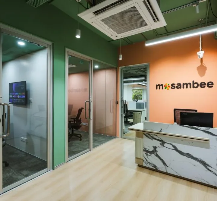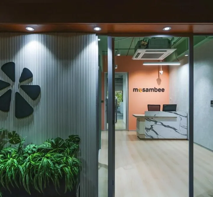 Simplicity in Colours is what we aimed for. The brief was to keep the office simple and open, just enough to welcome the employees into a fresh-looking space. Not all spaces need a grandeur to look appealing and that’s what we resolved to achieve for the Mosambee office at Sagar Tech Plaza.
